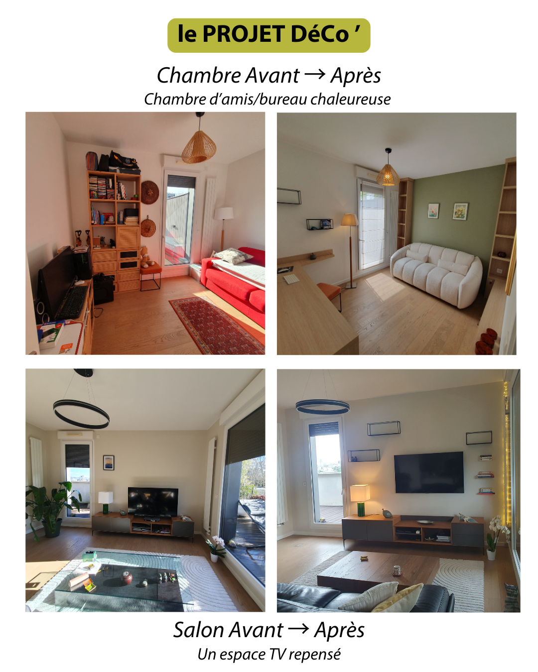 Le PROJET DéCo' ... Et si un intérieur repensé changeait réellement la manière dont on vit au quotidien ? C’est la réflexion à l’origine de ce projet, mené pour une cliente qui ne se sentait plus vraiment alignée avec ses espaces : une chambre sans personnalité, une entrée froide et peu fonctionnelle, et un salon à réagencer complètement. Mon rôle, c’est d’aider à remettre de la logique, du confort, de la cohérence… mais surtout de créer des espaces qui vous ressemblent ! --> Dans ce nouveau PROJET DéCo’, j’ai repensé trois espaces pour leur redonner du sens, du confort et de la personnalité :